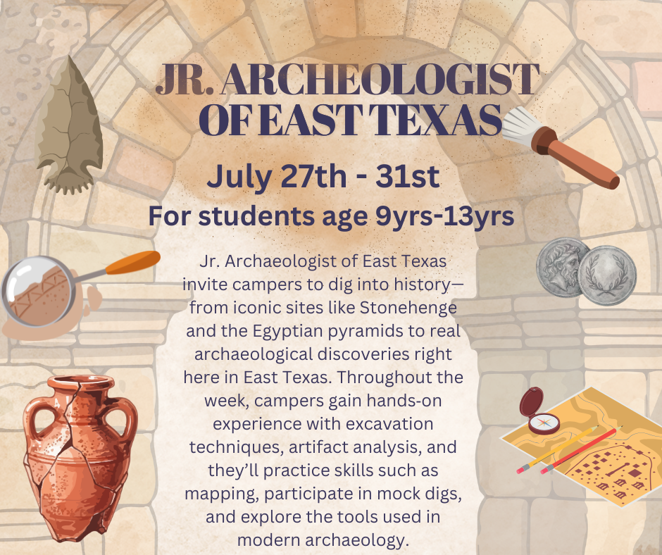 Week 8: July 27-31st Jr. Archaeologist of East Texas! for students age 9-13