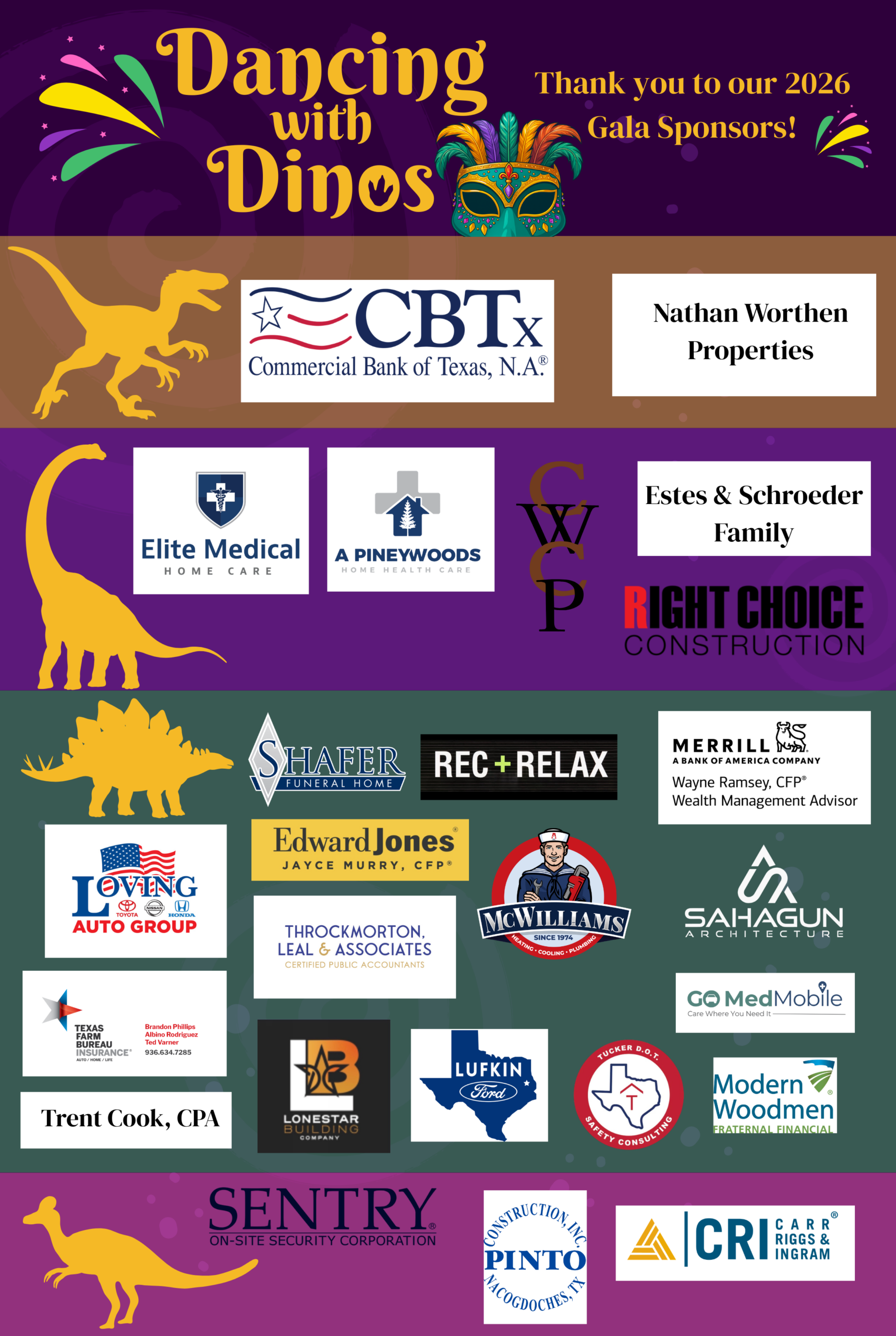 Being part of Dancing with Dinos is a great way to help the Naranjo Museum raise funds to help improve our exhibits, increase community engagement efforts, expand educational programs, and continue to serve the East Texas community.